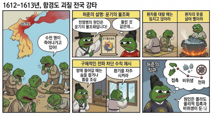 허준은 전염병이 물리적 접촉과 비위생적인 환경에 의해 전파된다는 것을 직관적으로 알고 있었고,