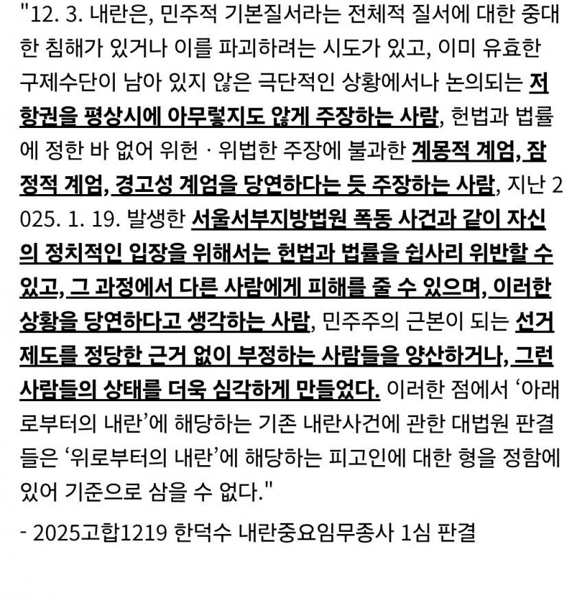 계엄이 사상자 없이 끝난게 결코 윤석열의 결정탓이 아니고 국민의 용기 때문이라는데, 그럼 그 논리에 따르면 광주는 용기가 부족해서 사살당하고 진압당했냐? 이란은 겁쟁이라서 만명 넘게 죽고 시위가 잠잠해졌냐? 판사가 공정하게 재판해야지 자아도취해서 질질 짜는 모습 꼴불견에 자격미달이다