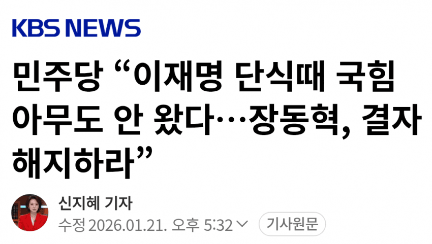 더불어민주당 이재명 단식때 국민의힘 아무도 안 왔다 장동혁 결자해지하라