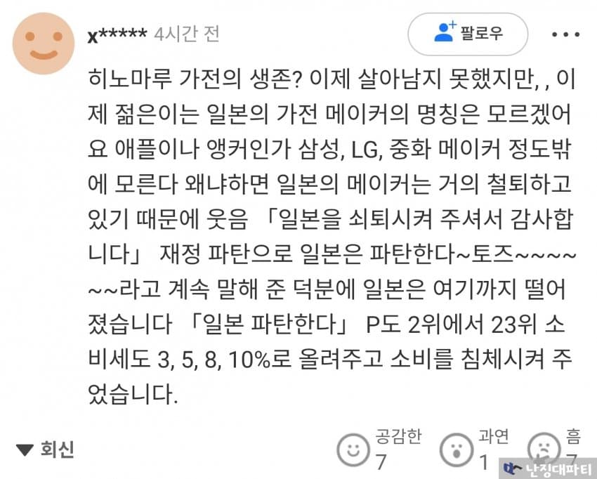 쪽발이들이 뻘짓하는 바람에 앞으로 우리 기업들의 경쟁이 더욱 힘들어질듯