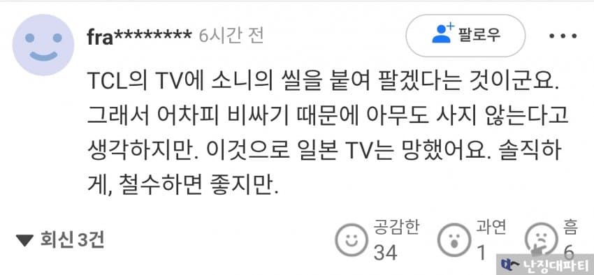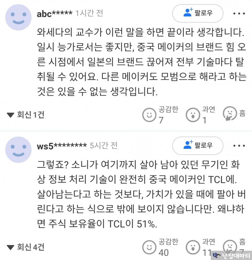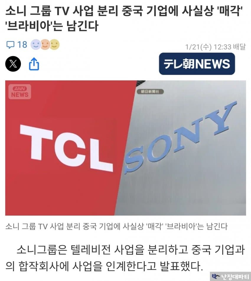 소니의 이번 선택으로 마지막까지 독자 개발 생산을 유지하던 일본 프리미엄 TV 브랜드가 마침내 중국 OEM 합작 체계로 전환하며 일본 TV는 전멸한 것이라고 보면 됨