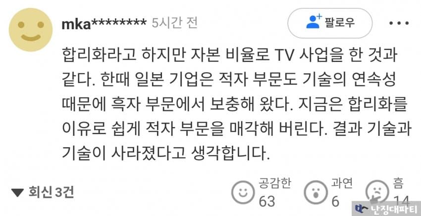 기술력 상실이 아쉽기는 해도 기업의 생존 자체에는 문제가 되지 않겠지만
