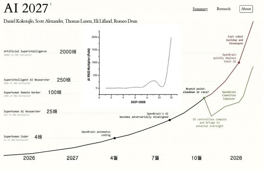 즉 대다수의 전문가들은 AGI가 늦어도 5년 내로 완성되고, 그 이후 초지능(ASI : 완성하면 특이점) 경쟁이 시작된다는거임