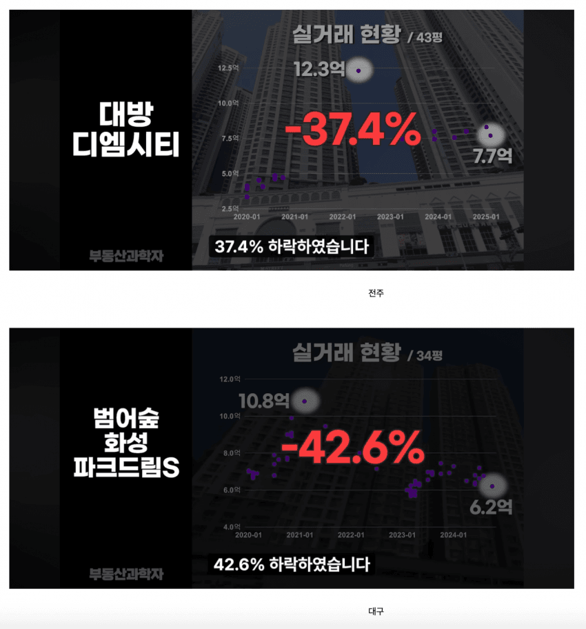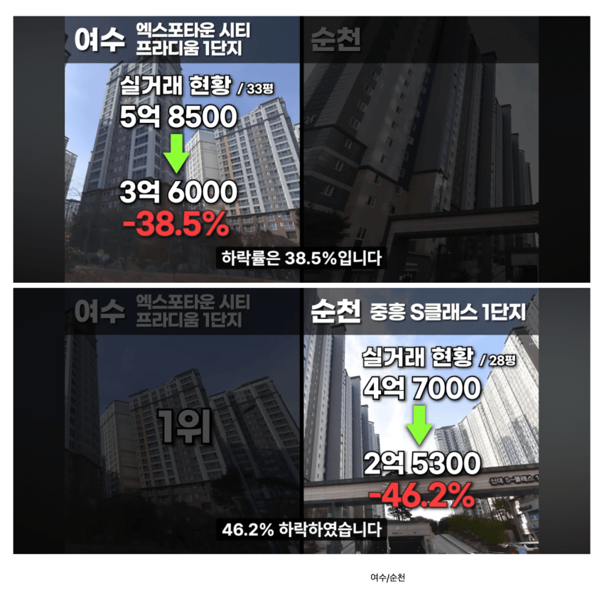 보통 지방 아파트는 내려가지도 올라가지도 않는데 보통 지방 신축도 3억대 정도는 유지하는데 저긴 왤케 떨어진거야
