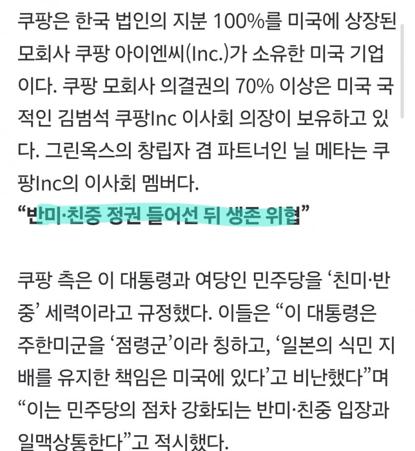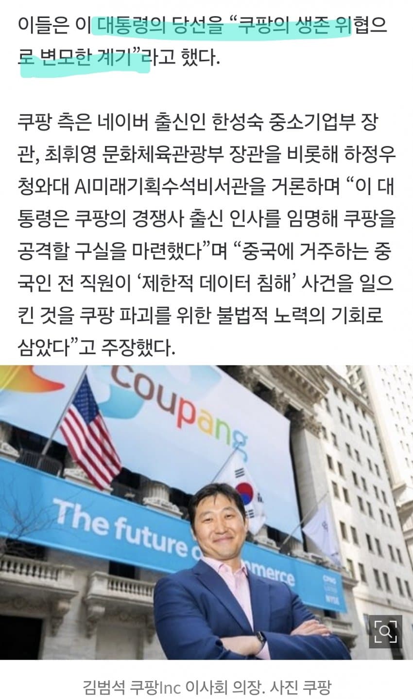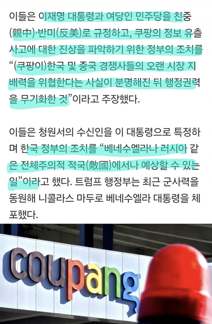 쿠팡, "친중 정부가 중국 위해 권력 무기화"