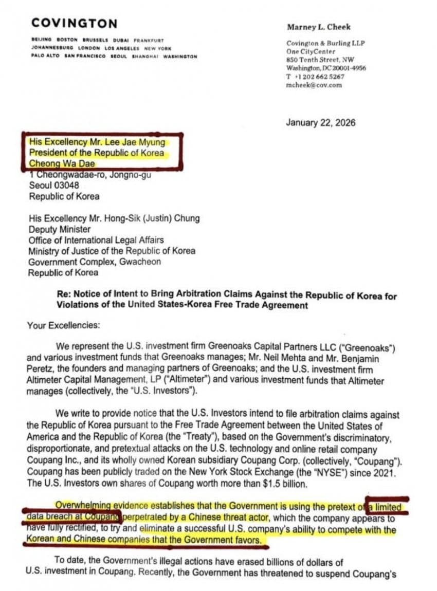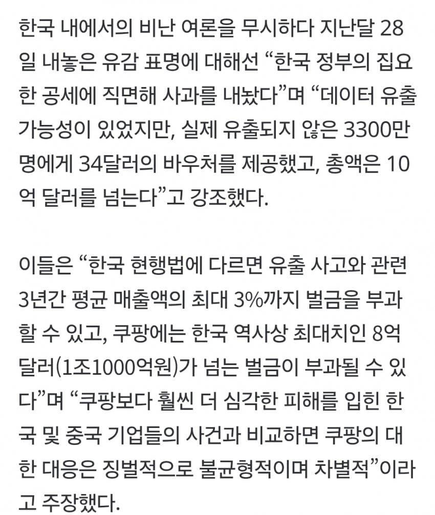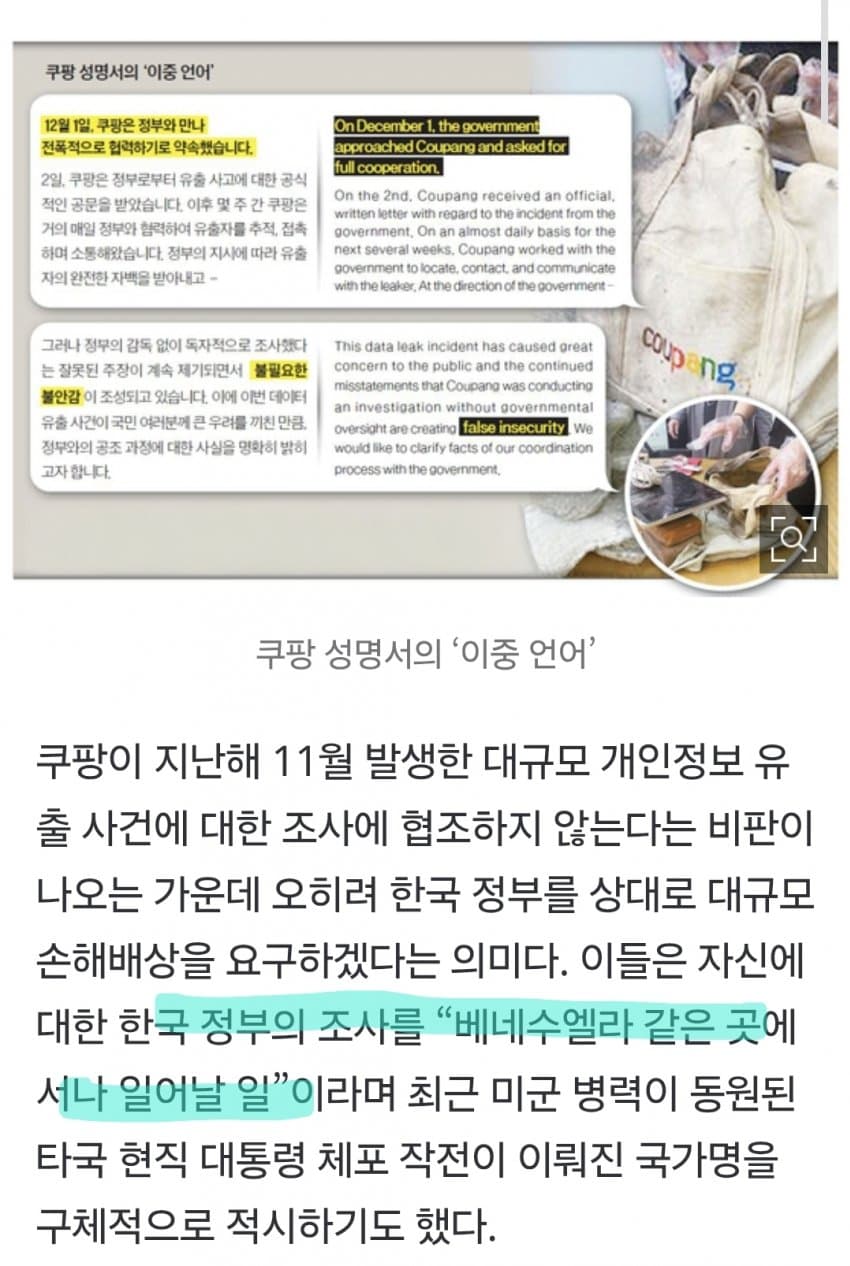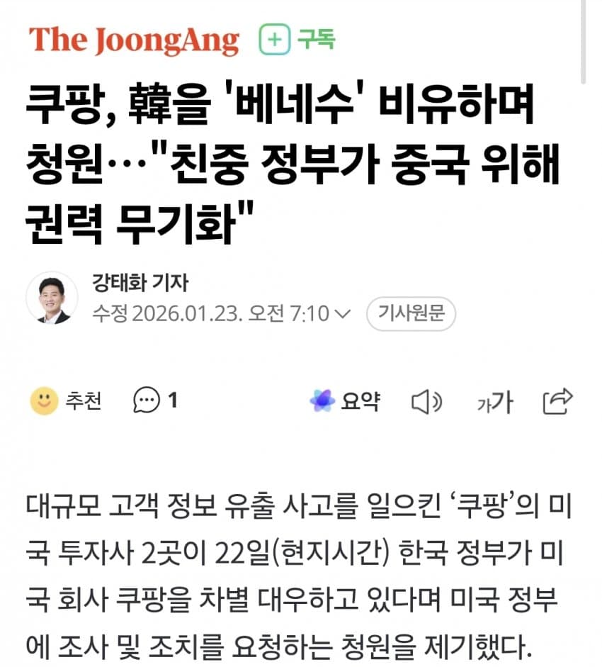 쿠팡, "친중 정부가 중국 위해 권력 무기화"