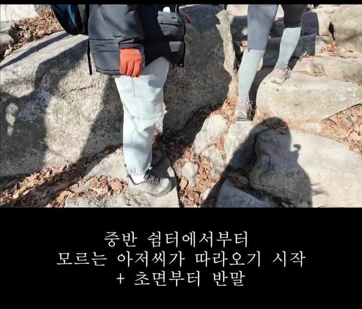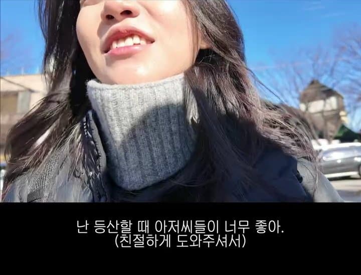 등산할때 아저씨들이 잘 도와줘서 좋다는 누나