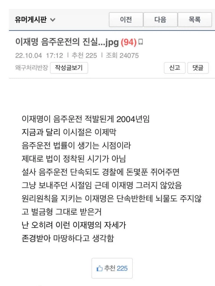 재매이햄도 하시는 음주운전정도 가지고 호들갑이노 음주는 이제 전국민들의 취미활동이 되어야한다