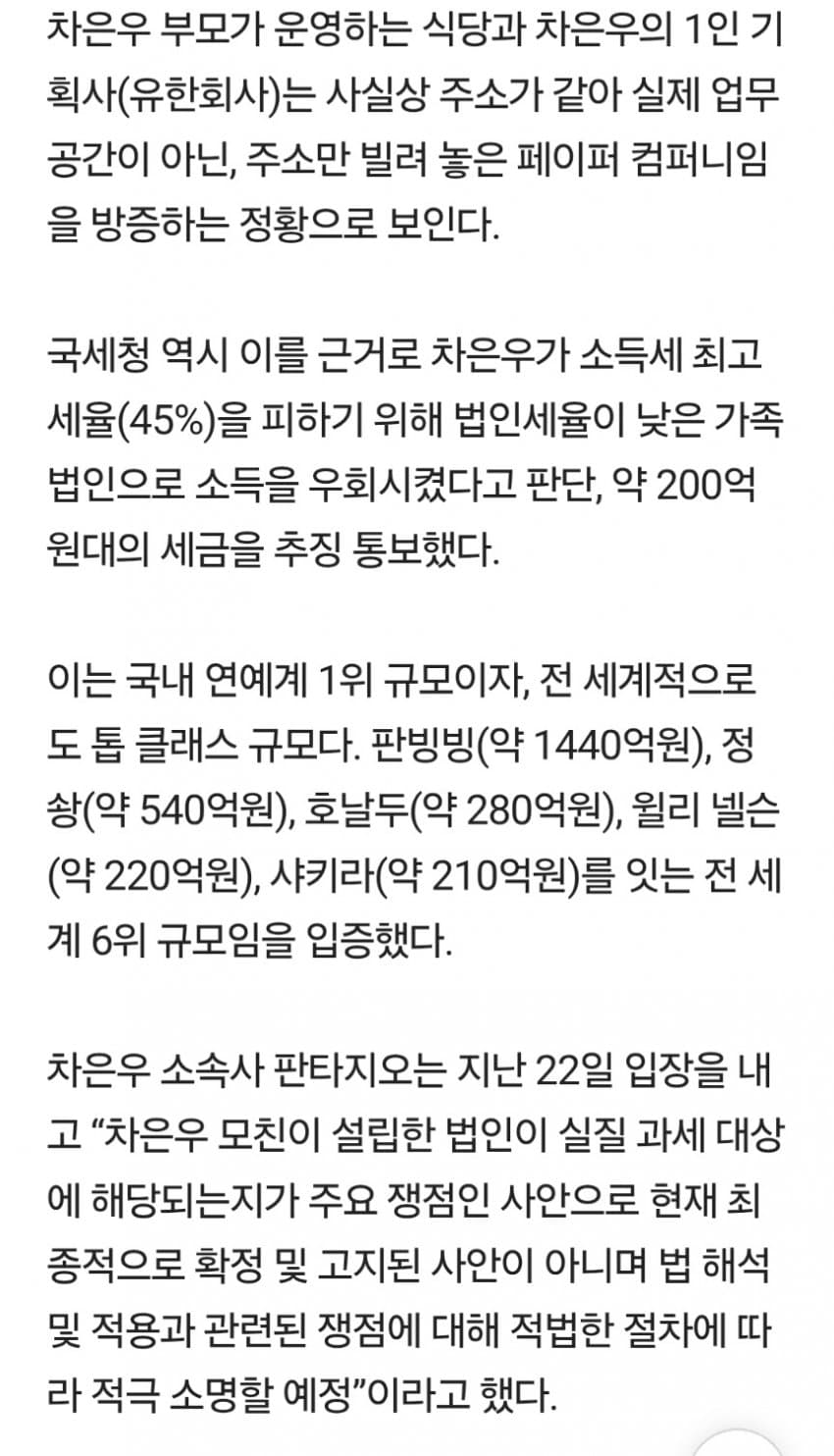 솔직히 세무사가 문제아니냐 ㅋㅋㅋㅋ 차은우가 지가 알아서 저렇게 어케함 다 셋팅해준 세무사가 있겠지 세무사를 조져라