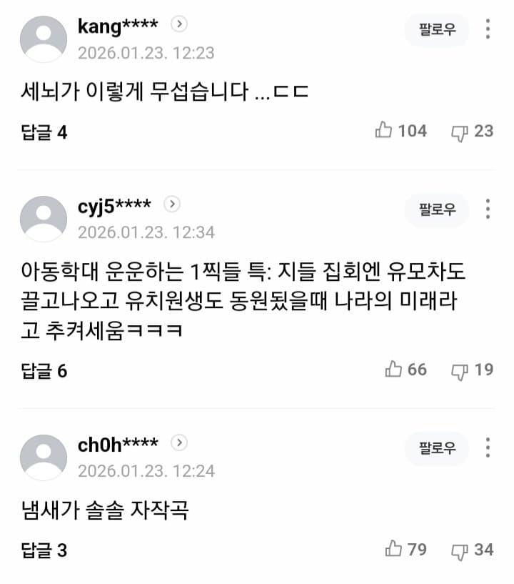 옛날에 민주당 아줌마들이 애들 데리고 시위한거 꺼내면 뭐함. 이제 지들이 그 포지션이 되어서 발악하는 건데
