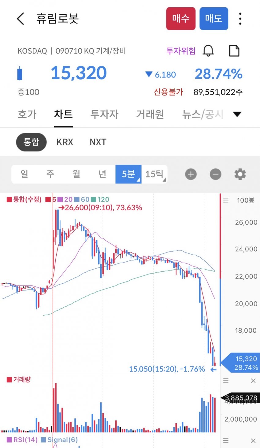 이거 오늘 +24%인가 까지 올랐는데 몇 시간후에 보니 -30% ㅋㅋㅋ 저때 산 놈들은 진짜 나락 갔다