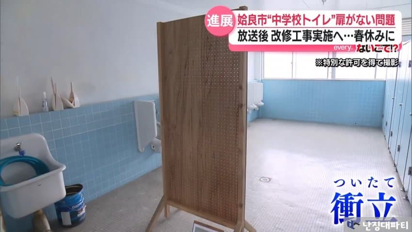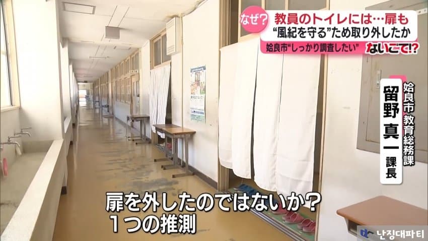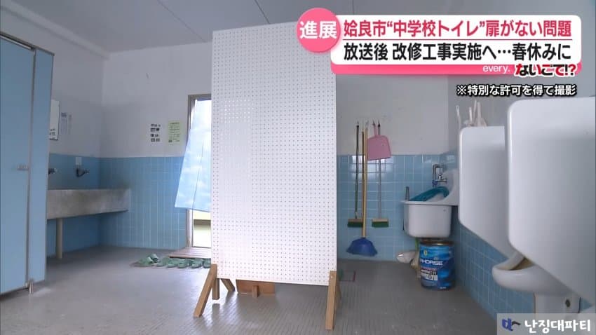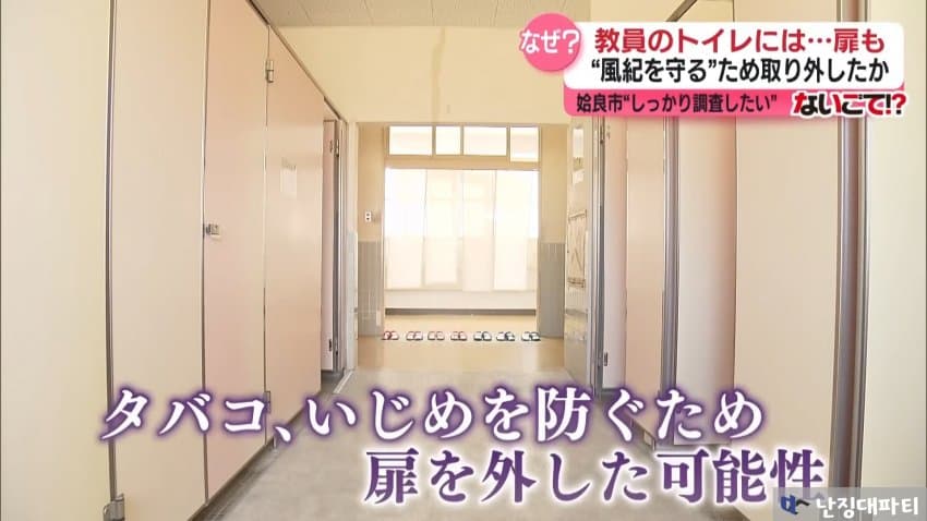 흡연 등 비행문제와 이지메를 방지하기 위해 화장실 문을 없앴다는 것이 관계 공무원의 설명...