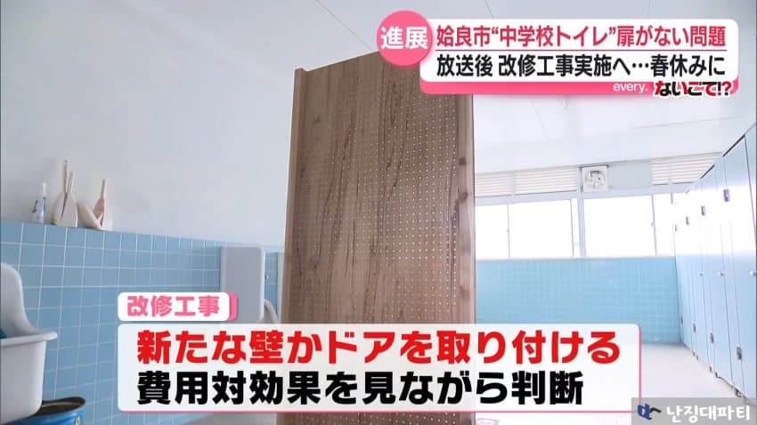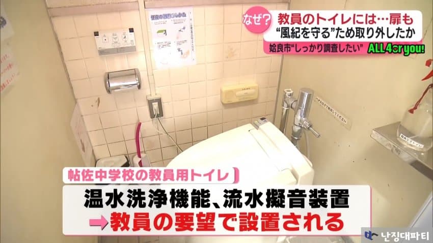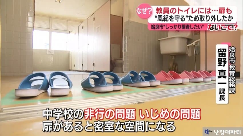또 중학교의 비행문제, 이지메 문제 등 화장실 문이 있으면 밀실 공간이 되기 때문에