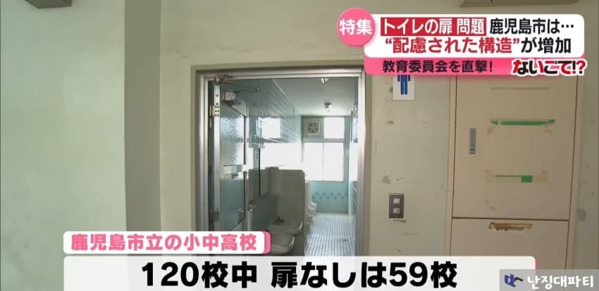 규모가 더 큰 가고시마시의 경우 초중학교 120곳 중 59곳이 화장실 문이 없음