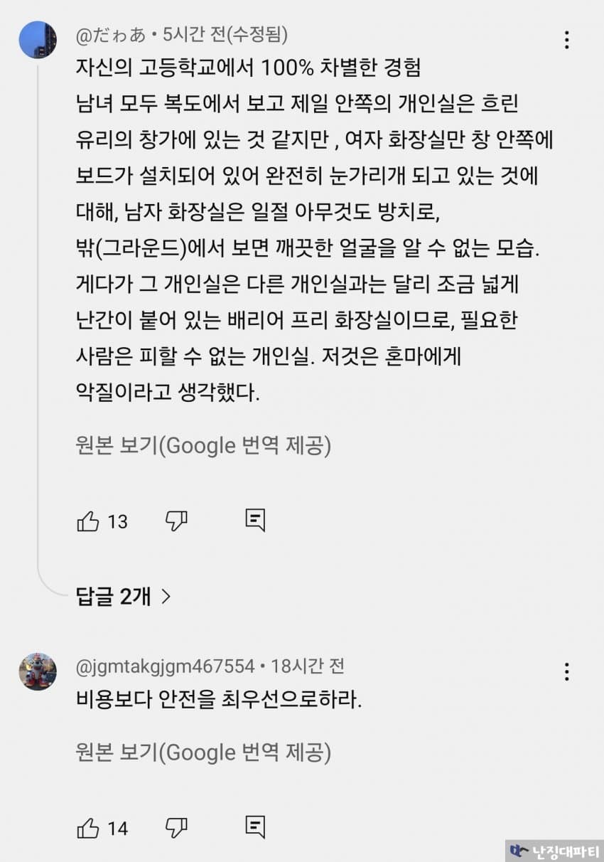 대체 왜 학교 화장실에 문을 설치하지 않는 걸까?