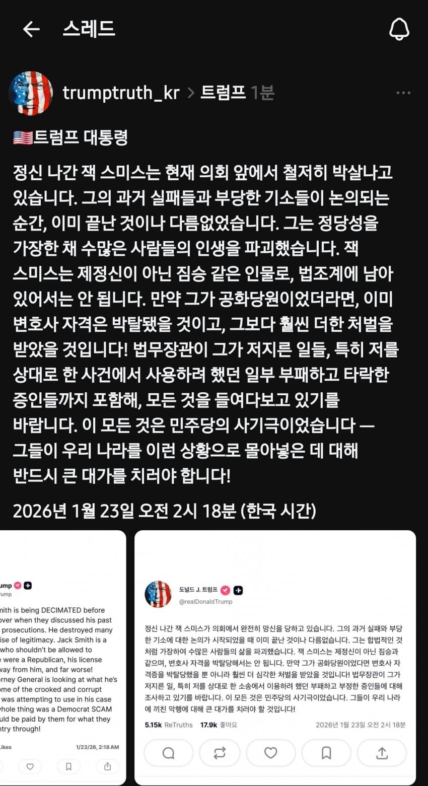 https://www.threads.com/@trumptruth_kr/post/DT1QSZIkx0S?xmt=AQF0zEUN8PthRSTBadzu38UwRY3JXFx_yt1de6RV3yE3oIKHXQ2v2BfIv1eC9TY0mB9SdT4j&slof=1