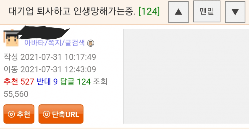 대기업을 버렸다고?????? 그것도 스스로? 그럼뭐 그뒤는 평생 그렇게 살아야지 어쩌겠노 ㅋ