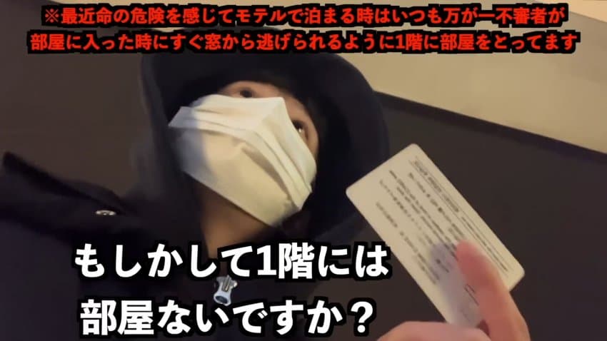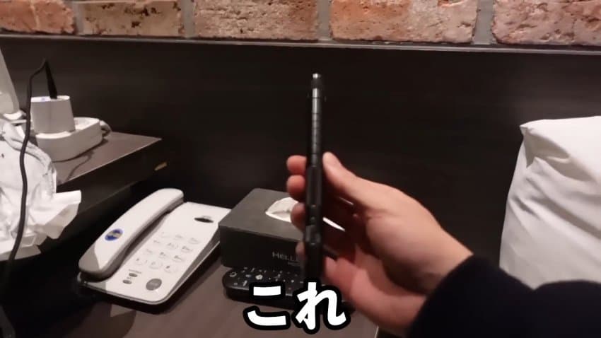 방에 들어가서는 모텔 잠금장치도 못믿겠는지 개인적으로 준비한 휴대용 잠금장치까지 설치함