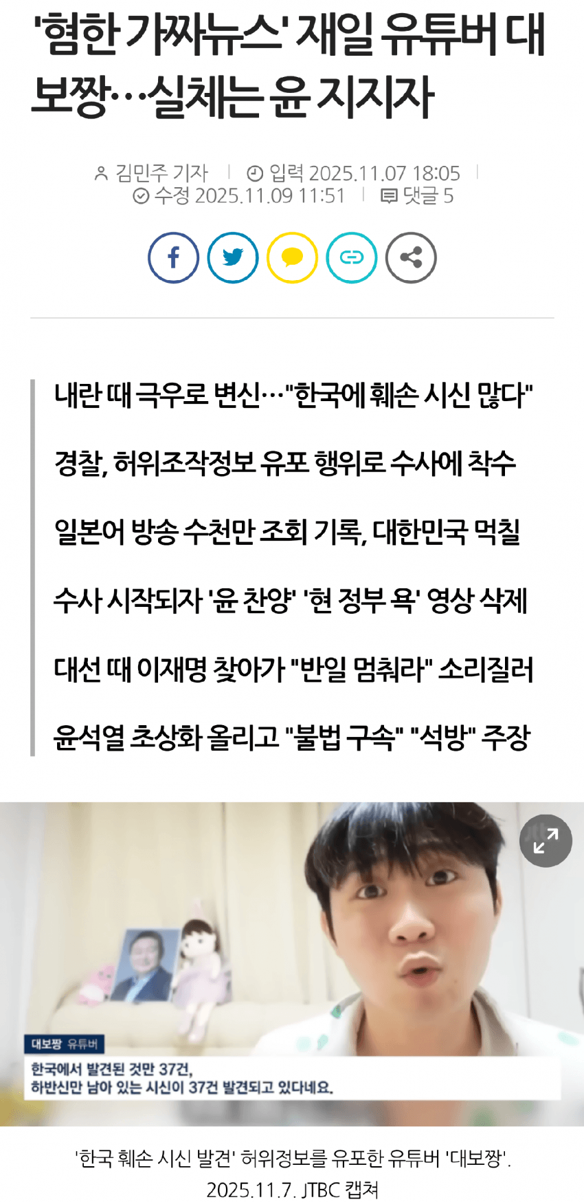 가짜 뉴스 유포 혐의로 수사를 받고 있는 친일 유튜버 조○○(채널명 '한국인 선생 대보짱'/활동명 '대보짱')의 근황을 보고 왔는데 정말 황당한 사실을 알게됨