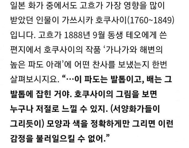 고흐의 대표작 '별이 빛나는 밤'은 호쿠사이의 파도 그림에 영향을 받았다.