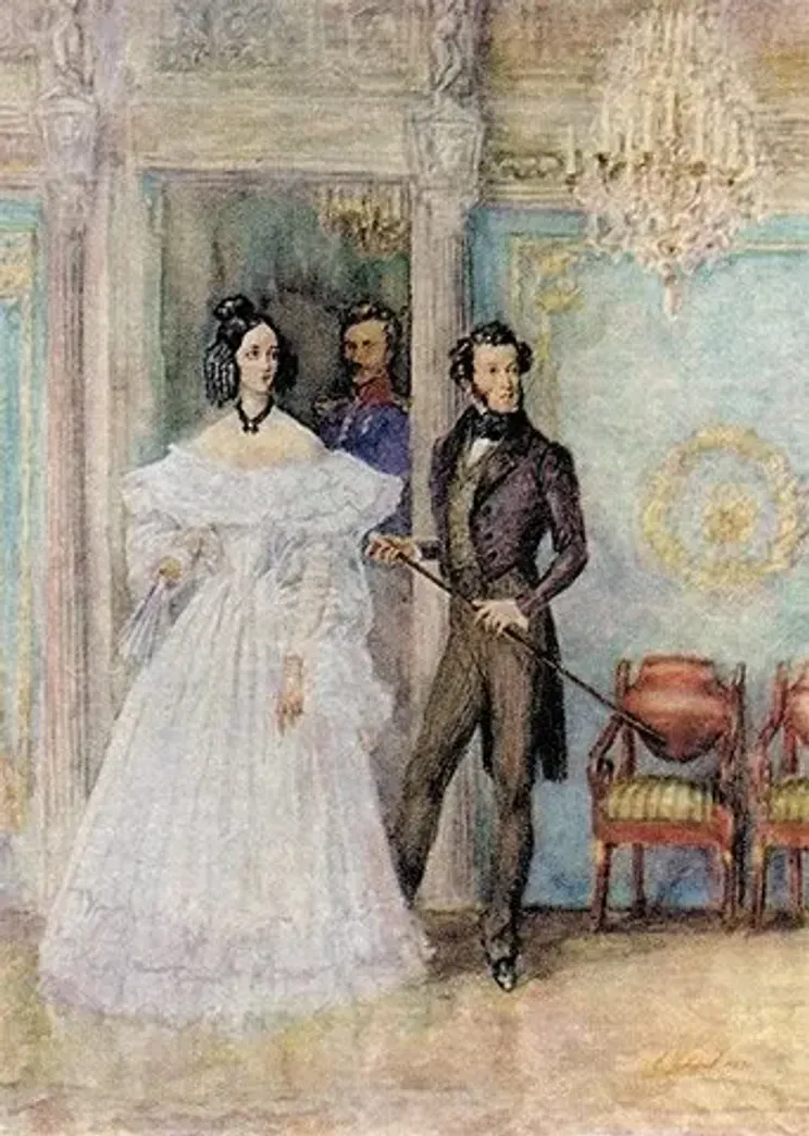 그런데 놀랍게도 푸시킨의 열렬한 대쉬에 나탈리아도 사랑에 빠져버렸고양측 부모의 거센 반발에도 둘은 결혼에 골인해버림당연히 못생긴 작가와 당대 최고 미녀의 결혼은 장안의 화제가 되었음그리고 그건 푸시킨의 비극으로 이어지는데
