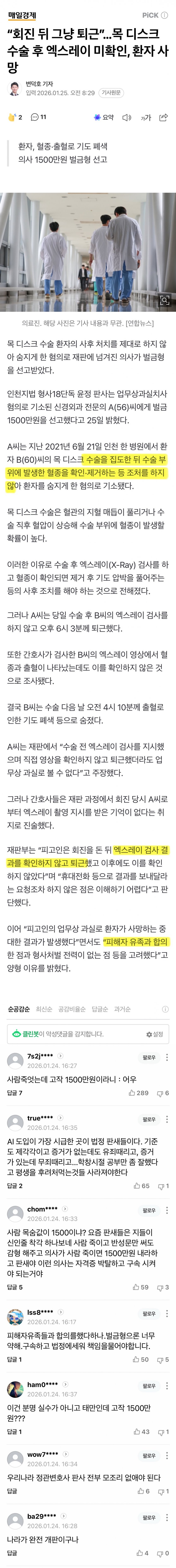 합의금 얼마받았냐레 다들 빠졌네보통 저런 상황에선 의사가 협박함 이 돈 받고 합의 하고 끝낼거면 끝내고 고소하고 싶으면 고소하라고 고소해도 우린 어쩌고 별 피해 없어서 상관없다고 함당해봐서 암