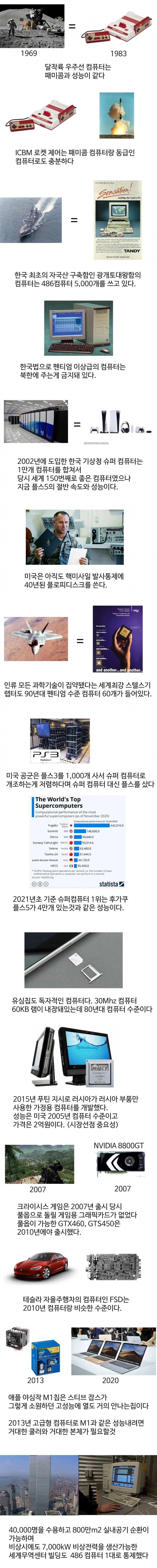 컴퓨터는 필요 목적에 따라 있으면 되는거임연산에 빠른속도가 필요가없고, 연산속도가 느리고, 공정이 세밀하지않을수록안정성은 그만큼 올라감에러뜨면 치명적인 상황을 유발할수있는 항법장비나 핵미사일 발사코드 같은게 구닥다리 컴퓨터가 들어가는 이유임