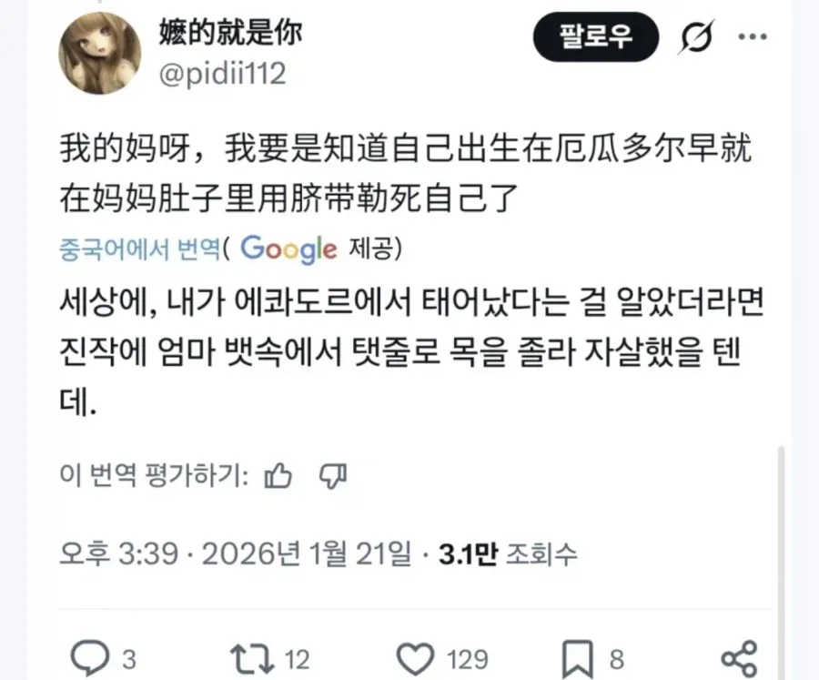 이런식으로 중국과 동질감 느낄 바에는 인종차별 당하고 산다 ㅇㅇ