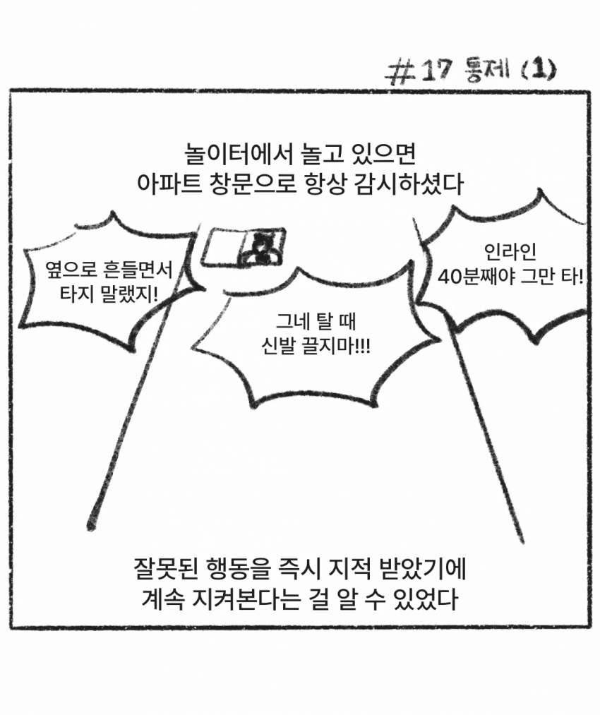 나도 어렸을때 친구들이랑 노는거 하루 30분 제한에다가 공중파밖에 안틀어지는 tv도 30분씩 제한걸리고 나 놔두고 엄마 외출할때는 tv 연결하는 콘센트 가져갔었음