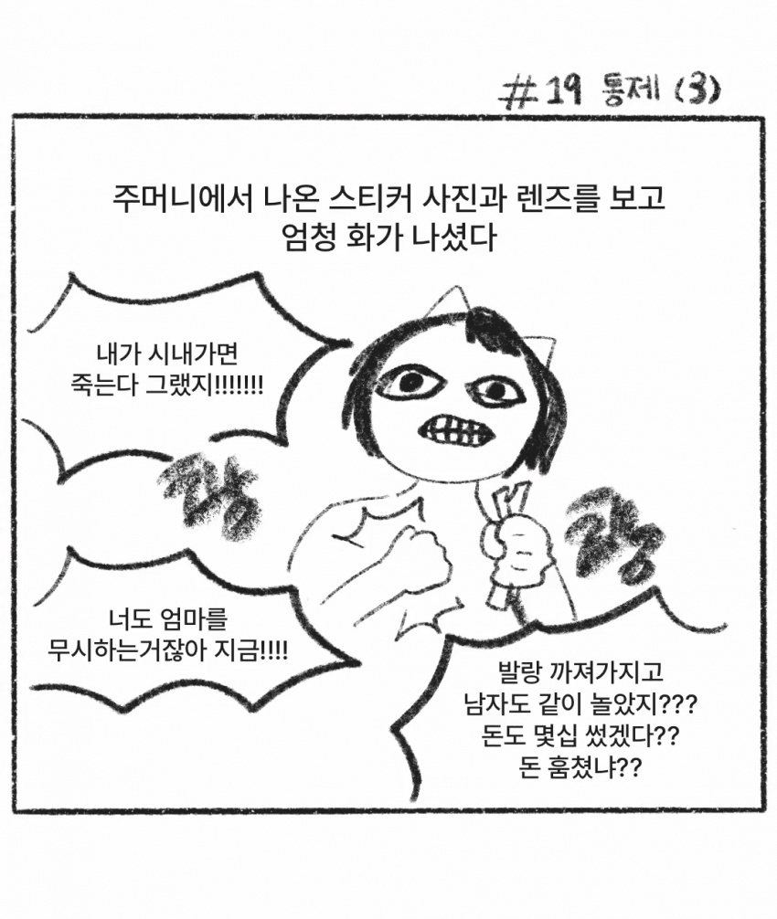 유희왕카드 모으는거 도박인줄알고 가위로 다 잘라버림 게임기 사준적 없음학원다니면서 이동시간 공백 20분이상 넘어가면 바로 학원선생이랑 친구랑 친구엄마한테 전화다돌리면서 내위치 추적함결국 폰 다시 개통 해준것도 내 일거수일투족 감시하려고 그런거였음