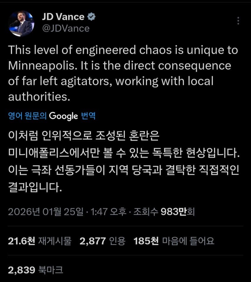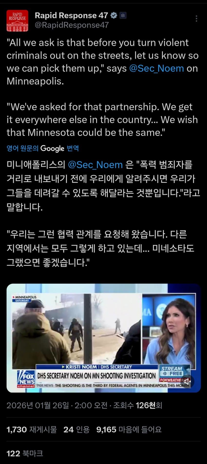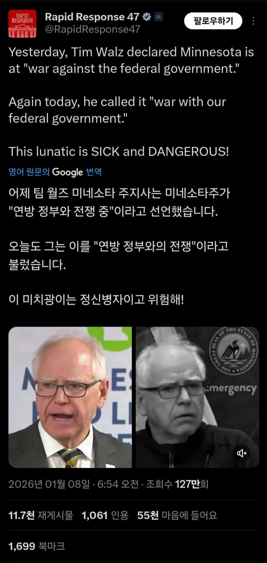게다가 현재 미네소타 주지사는 2024년 해리스의 부통령후보 러닝메이트였던 거물 좌파 팀 월즈로서