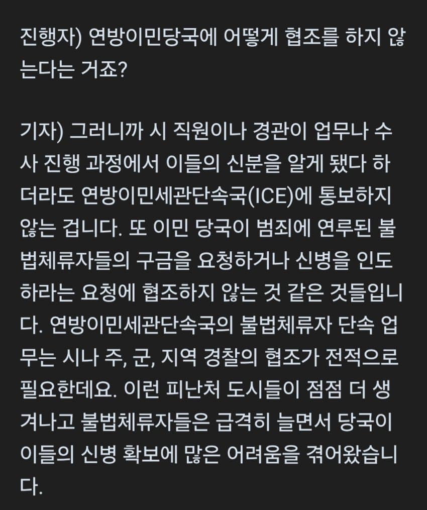 이처럼 민주당 쪽에서 ICE와의 협조를 거부하기 때문에