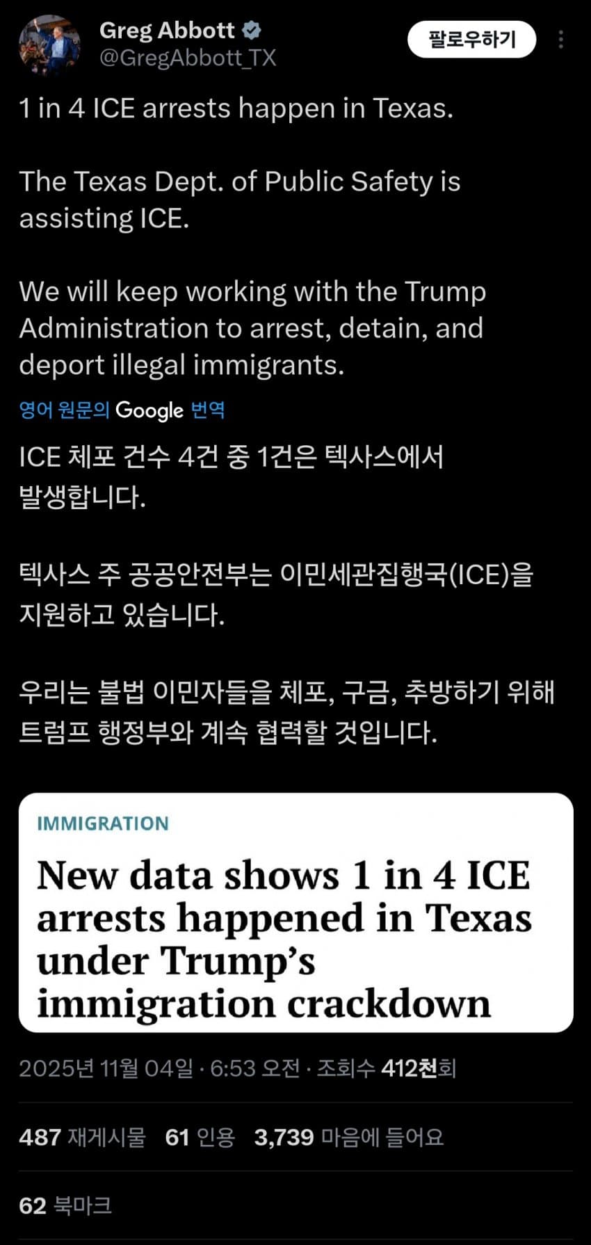ICE 불체자 단속이 그 자체로 갈등을 수반하는 게 아니라는 사실을 알 수 있음