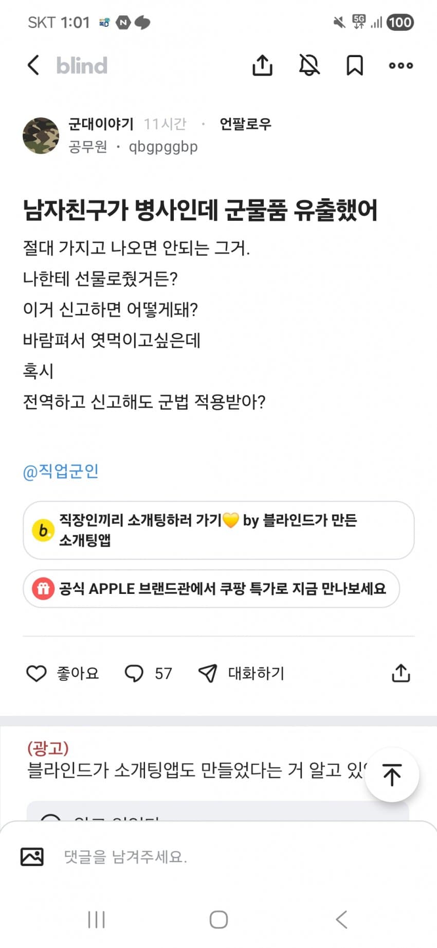 응 여자도 빼돌린 군용물인 걸 알면서 선물로 받았기 때문에 장물취득죄 성립해^^군용물등범죄 특별조치법으로 군용물 장물죄는 벌금 없이 징역만 있어~ 공무원직 ㅂㅂ