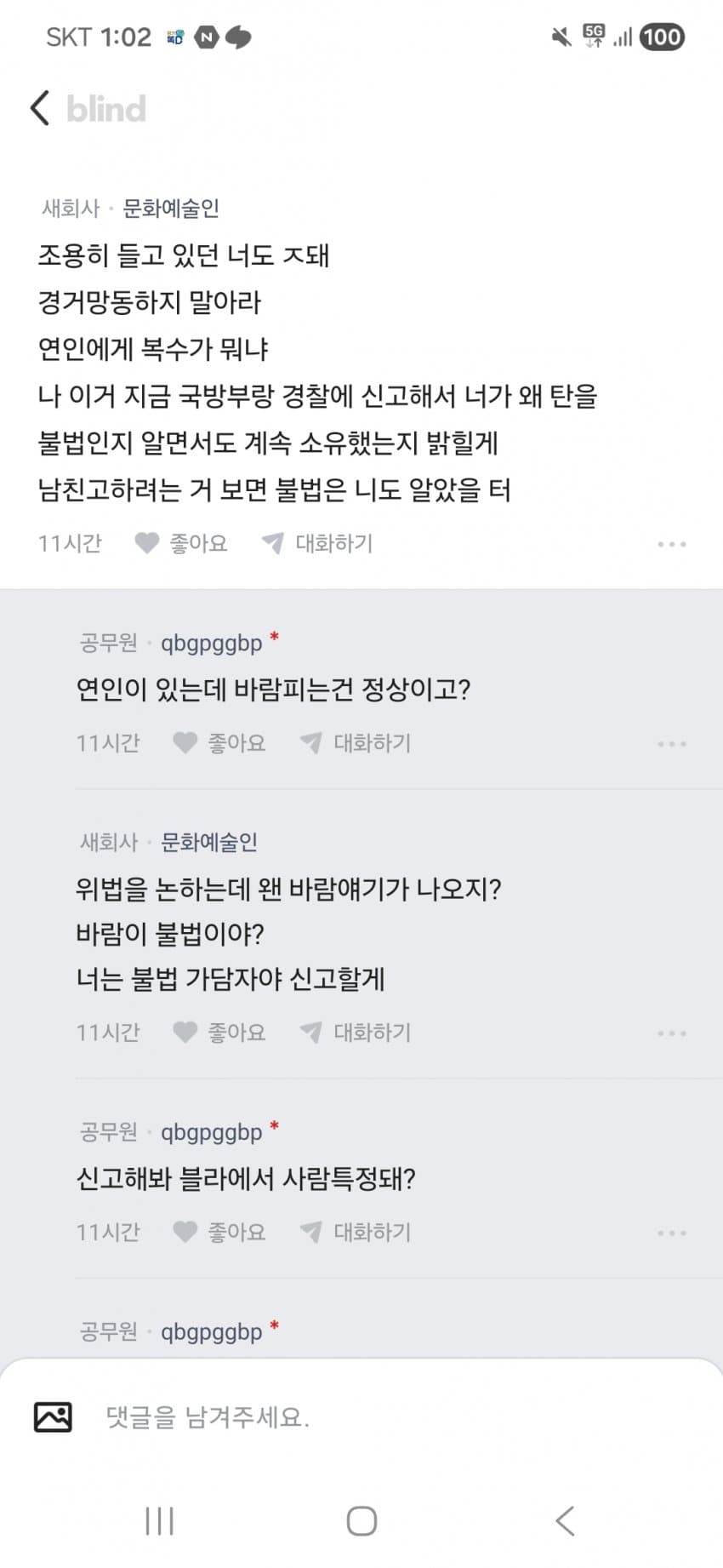 공무원이 겁도 없노 진짜 한국 여자들은 이성이란게 없나? 모든 행동 요인이 감정밖에 없는거임? 왜 저러는거임 진짜 이해하기 어렵네