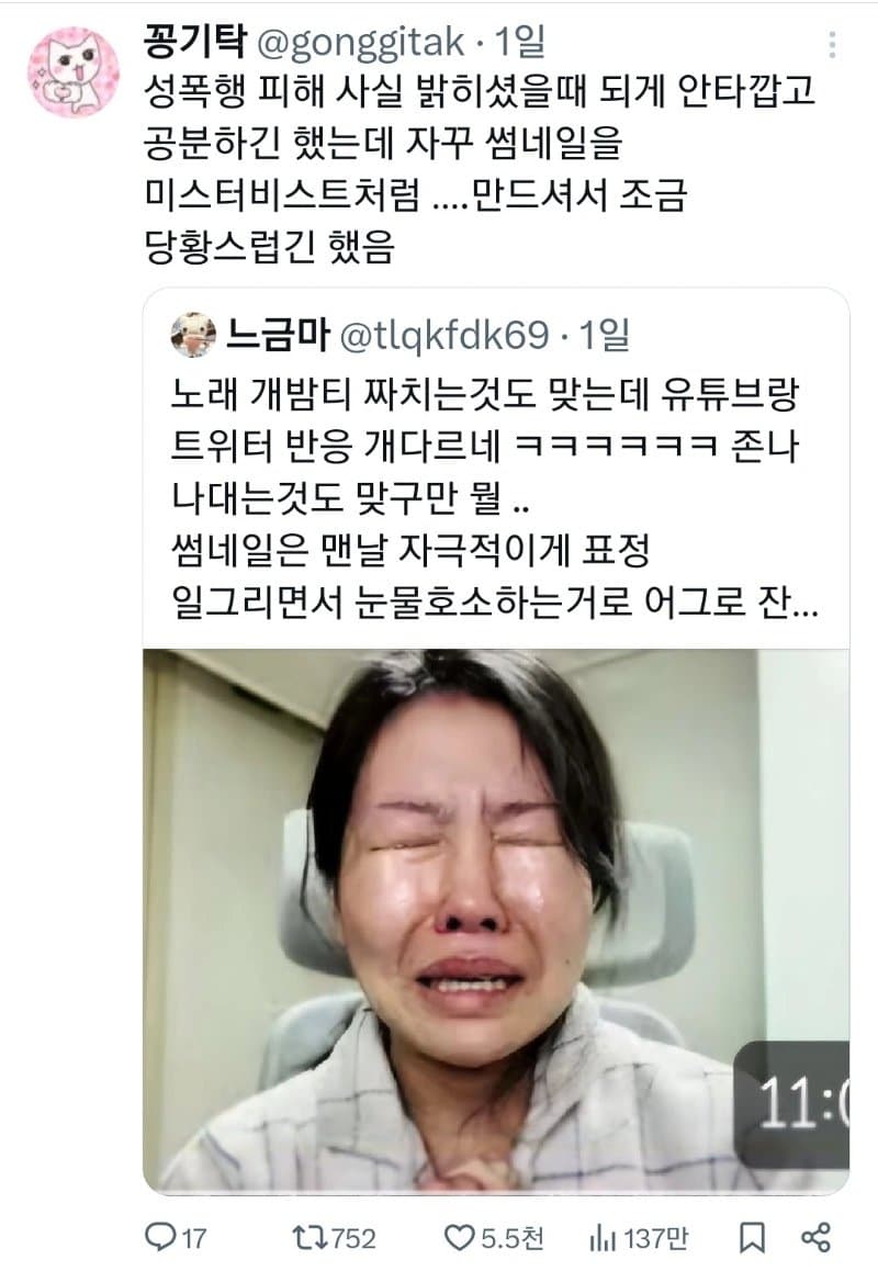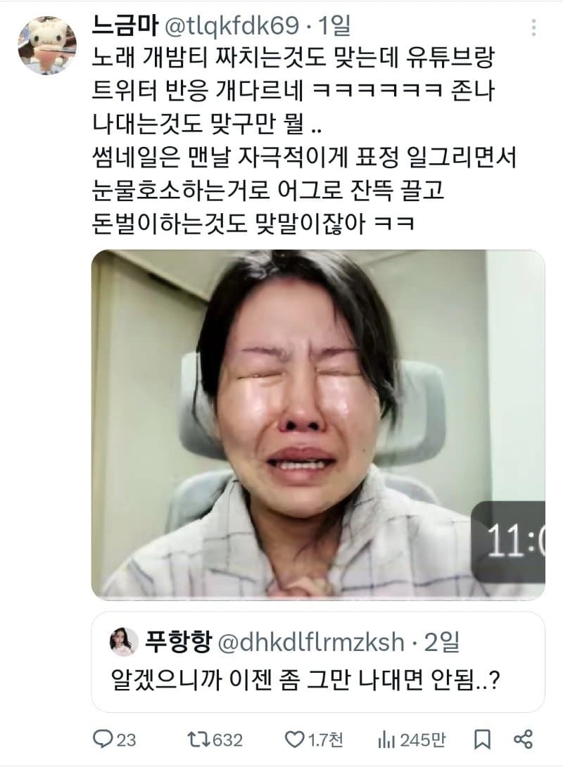 최근엔 노딱 받아서 빡쳤다고 함...