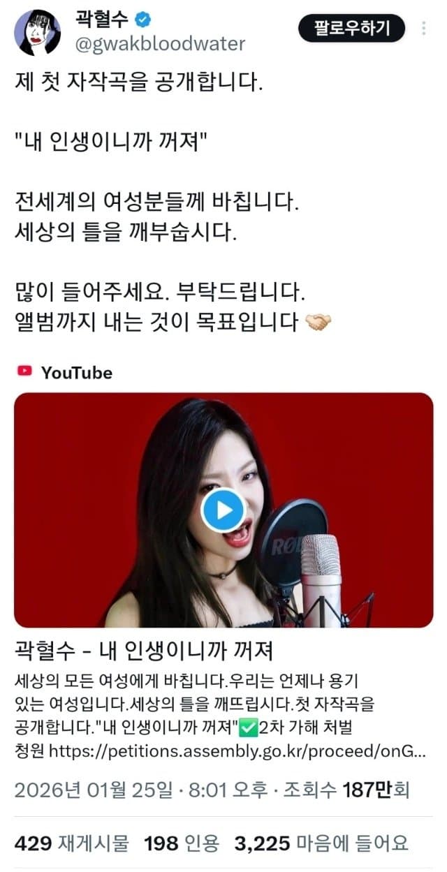 22세 유튜버 곽혈수