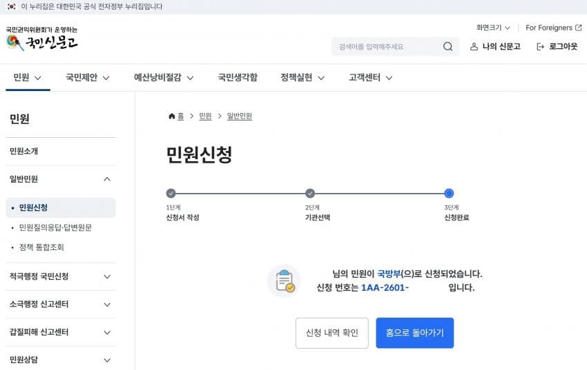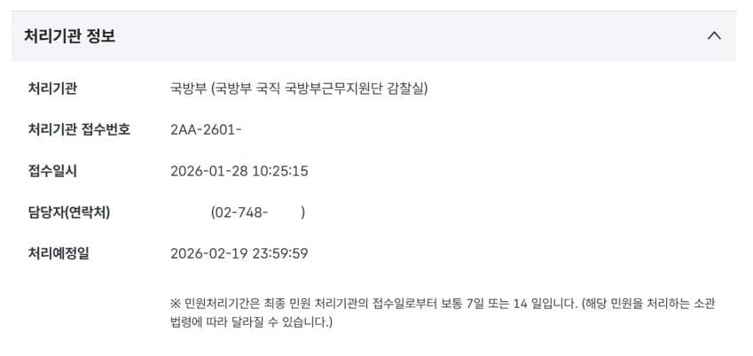 국방부 국민신문고 담당자는 1월 28일 본인과의 통화에서