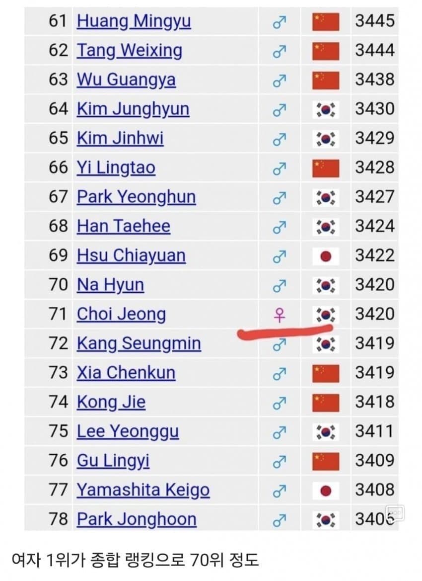 신체적 조건 타는 스포츠는 그러려니 하는데 바둑, 체스, 겜도 다 여자리그가 따로 있는겨? 남자리그에 못끼는 거야 아니면 일반리그인데 못 해서 여자리그로 가는거야