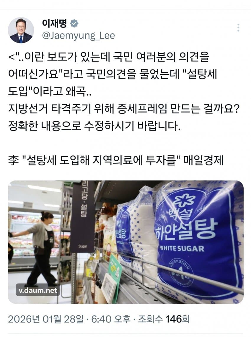 도입할 생각 없으면 왜 물어봐. 그래놓고 격노? 미친놈아냐 이거나라에 돈 얼마나 없으면 이젠 설탕세까지 만들고 자빠졌네