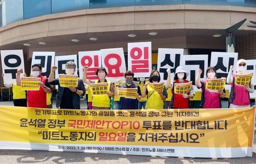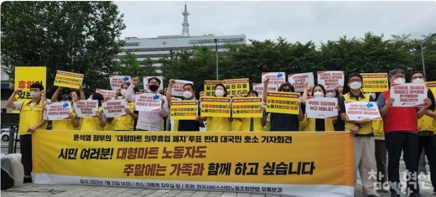 노조가 지들이 피해자 행세를 하네정치구호를 온몸에 두르고 있으니 고객이 안오는건데출근을 한건지 집회를 나온건지 구분이 안갈지경