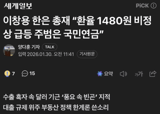 정확한 원인을 아직도 파악을 못하니 엄한 서학개미니 국민연금이니 타겟 잡아서 면피하려는거임.[환율 오른 이유 = 코스피 억지로 펌핑 -> 외국인 얼싸좋다 매도 -> 원화 매도 달러 매수 -> 환율 상승]저 코스피 펌핑 한 자금이 M2에 잡히니까 이번에 M2 통계 기준까지 20년만에 바꿔버리면서 은폐함.뭐든지 자유시장경제로 안놔두고 정부가 나서면 다 부동산, 주식, 환율 처럼 십창 나는거야부동산, 주식 펌핑만 하면 될 줄 알았겠지만 그건 북한 같은 환율도 없는 폐쇄 경제에서나 통하는 개수작