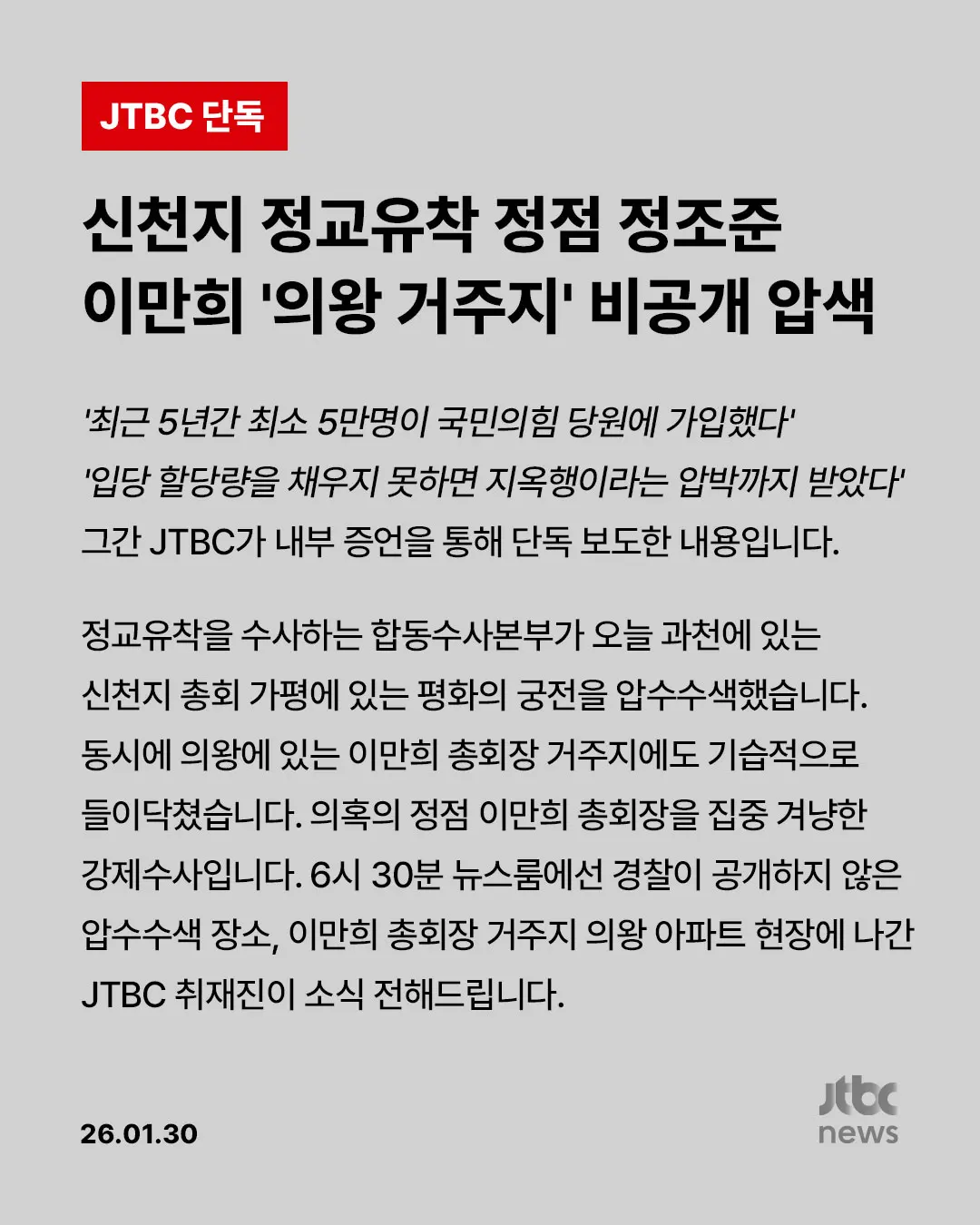 jtbc단독) 신천지 이만희 '의왕 거주지' 비공개 압색