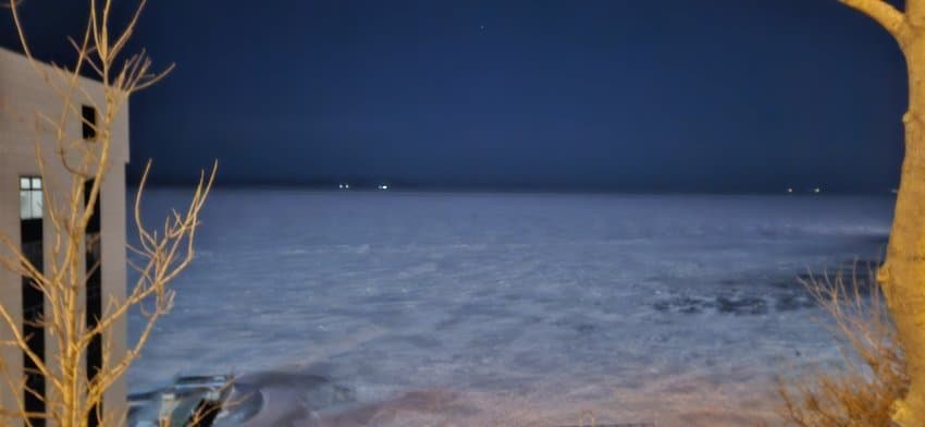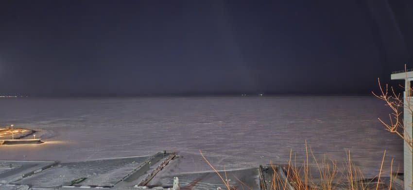 그 바냐 뒤에 보이던 얼어붙은 겨울 바다의 그야말로 숨이 막히는 광경