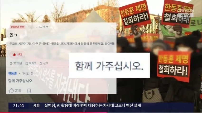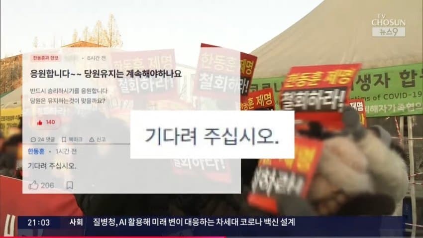 지난주에 이어 내일도 지지자들이 국회 앞에서 당 지도부 규탄대회를 열 계획인데, -사진- 한 전 대표는 온라인 커뮤니티에 "함께가자""기다려달라"는 댓글을 직접 달았습니다.