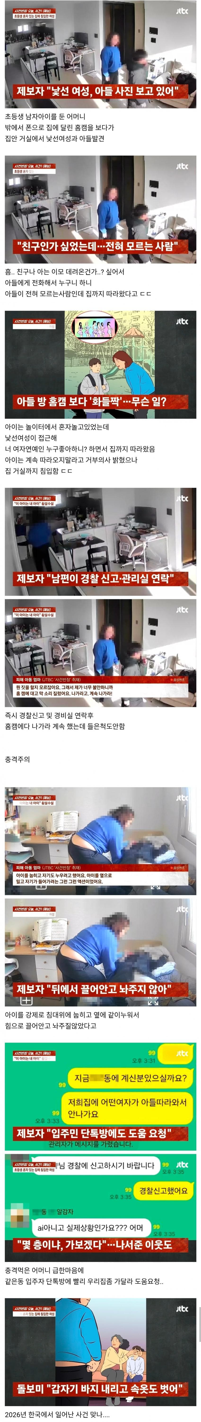 홈캠에 보이는 사람이 모르는 사람이면 바로 경찰서 신고해야지 홈캠에 경고하고, 입주자 단톡에 이야기한들 뭔소용임 단톡 사람들도 결국엔 경찰에 신고루트일건데. 거기다가 결국엔 남편이 대신 경찰에 신고했네 ㅋㅋ
