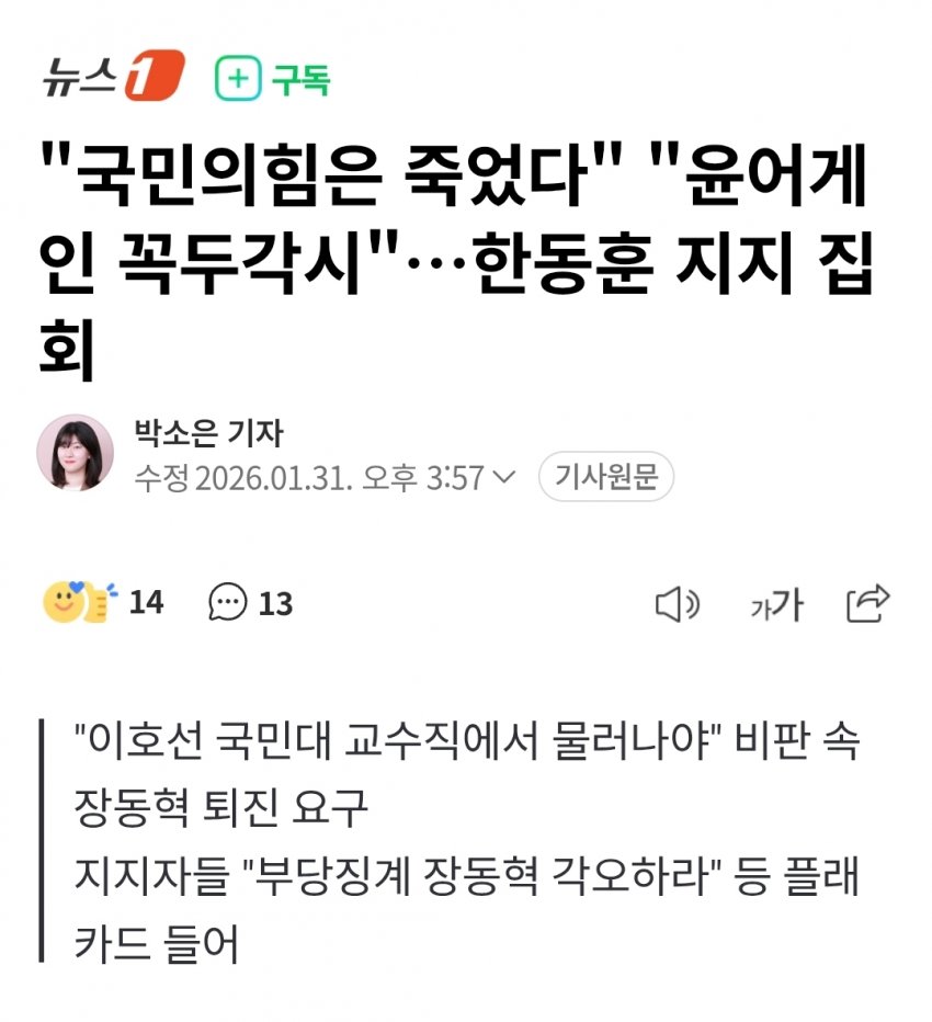 죽은건 국힘이 아니라 한뚜껑이지. 아직도 현실 파악이 안되나