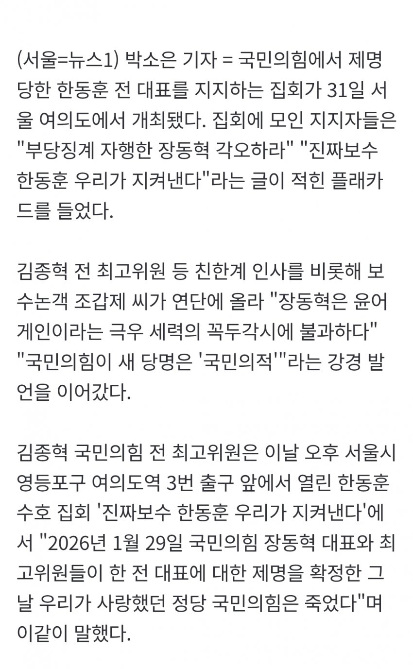 "국민의힘은 죽었다" "윤어게인 꼭두각시"…한동훈 지지 집회