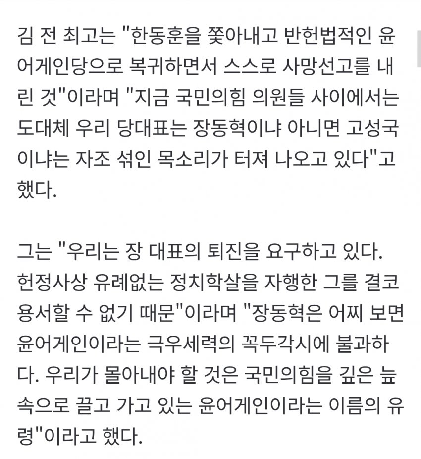 한동훈 안철수같은 애매한 중도몰아내고 진짜 우파 윤어게임세력들만 남기고 윤어게인당으로 당명바꾸자 그게맞다