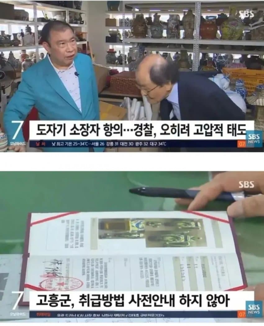전남 고흥군측이 경찰한테 도자기 취급방법 안알려줬다고 판시함